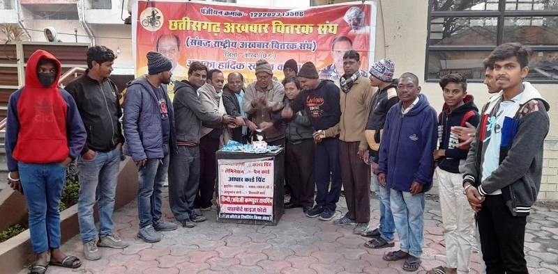 इस अवसर पर छत्तीसगढ़ अखबार वितरक संघ की ओर से बताया गया कि भारत सरकार ने ई-श्रम पोर्टल जारी किया है, जिसमें अखबार वितरकों को भी असंगठित मजदूर के रूप में बीमा पेंशन, अन्य श्रम कल्याण योजनाओं का लाभ मिलेगा। इसके लिए स्वयं या अन्य अखबार वितरकों को प्रेरित कर पंजीयन जल्द से जल्द कराएं ताकि प्रदेश व केंद्र शासन द्वारा घोषित योजनाओं का लाभ अखबार वितरकों को मिल सके। कार्यक्रम में छत्तीसगढ़ अखबार वितरक संघ के विनोद सिन्हा, विपेंद्र कुमार साहू, जय सिंह नेताम, लक्ष्मी राठौर, रामा, तपेश्वर राठौर, राय सिंह कंवर, अनिल गिरी, राजकुमार पटेल, कृष्ण कुमार निर्मलकर, विलसन देव पटेल, गोलू देवांगन, दिलीप यादव, राघवेंद्र, सुनील साहू, दीपक, यश नेताम, बजरंग, ओंकार आदि उपस्थित थे।