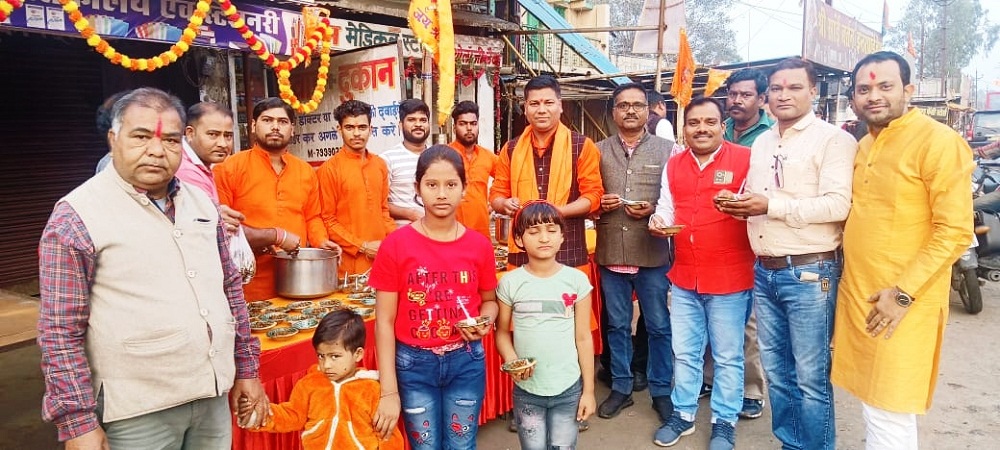 अयोध्या में श्रीराम स्थापना पर हरदीबाजार हुआ राममय, जगह-जगह खीर-पूड़ी व चना प्रसाद का वितरण