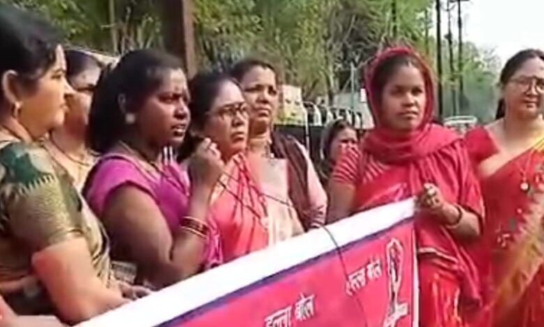आंगनबाड़ी कर्मियों ने भरी हुँकार, हड़ताल कर रैली निकाली