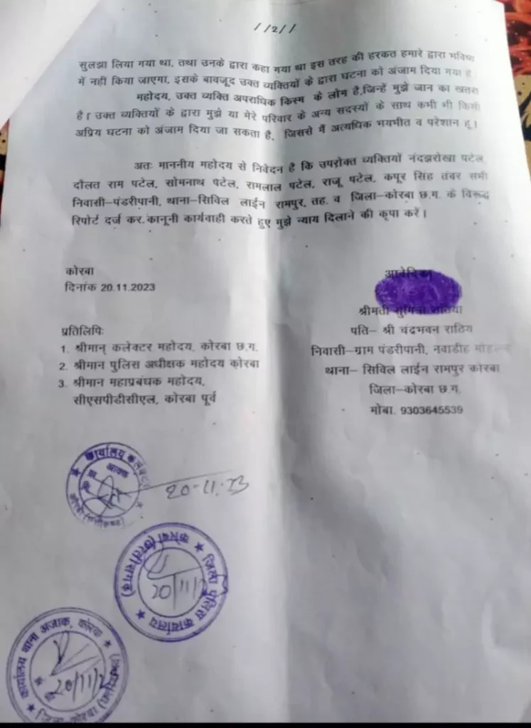 आदिवासी महिला के साथ गाली-गालौच व मारपीट, ननकीराम की देते हैं धौंस, पीडि़ता ने कलेक्टर, पुलिस अधीक्षक, आजक थाना में की शिकायत