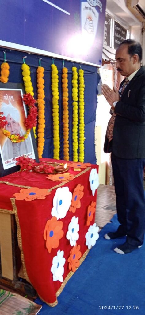 कर श्रद्धा अर्पित की गई। विद्यालय में कार्यरत शिक्षक-शिक्षिकाओं ने सप्राचार्य यज्ञ में आहुतियाँ दी गई तत्पश्चात प्रसाद वितरण किया गया ।