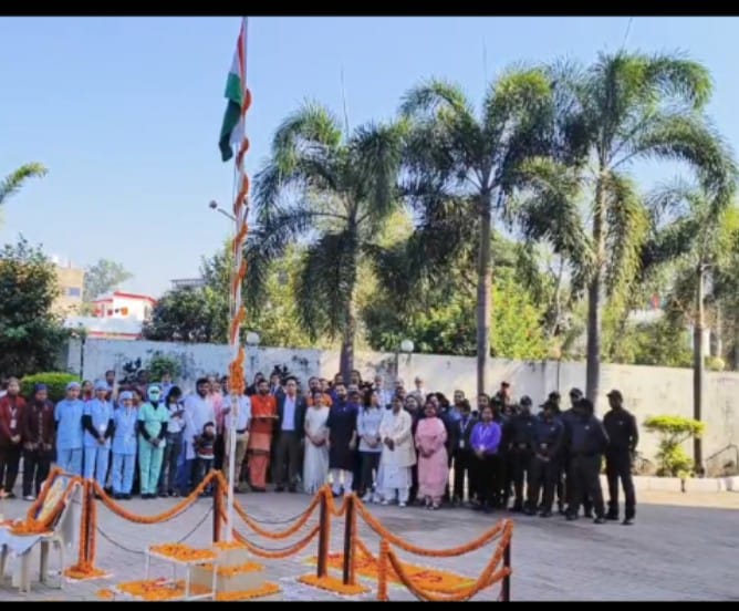 कोरबा। 75 वें गणतंत्र दिवस के अवसर पर न्यू कोरबा हॉस्पिटल में ध्वजारोहण का कार्यक्रम आयोजित किया गया। निर्धारित समय सुबह 9:00 बजे ग्रुप डायरेक्टर डॉ.एस. चंदानी ने अस्पताल में ही भर्ती मरीज़ के साथ एनकेएच परिसर में तिरंगा फहराया। राष्ट्रगान उपरांत शहीदों को श्रद्धांजलि अर्पित की गई। डॉ. चंदानी ने गणतंत्र दिवस की 75 वीं वर्षगांठ के पावन अवसर पर प्रदेशवासियों को हार्दिक बधाई और शुभकामनाएं दी। इस दौरान डॉ. चंदानी ने कहा है कि हम सभी को गणतंत्र दिवस पर स्वतंत्रता संग्राम सेनानियों के बलिदान, व्यक्तित्व और आदर्शों से प्रेरणा लेकर जीवन में चरित्र और नैतिक मूल्यों के गुणों को आत्मसात करना चाहिए। यह पर्व राष्ट्रीय एकता, शांति और सद्भाव की भावना को सुदृढ़ करने का अवसर है। उन्होंने समस्त स्टाफ से नईं ऊर्जा व नई शक्ति के साथ बेहतर स्वास्थ्य सेवाएं देने का आह्वाहन किया। इस अवसर पर डॉ. एस पालीवाल, डॉ. आर पालीवाल, डॉ. अविनाश तिवारी, डॉ .सुदीप्तो, डॉ. अमन श्रीवास्तव, डॉ. नागेंद्र बागरी, डॉ. अविनाश सिंह सहित हॉस्पिटल के जूनियर डॉक्टर्स व स्टाफ मौजूद थे । अंत मे सभी मरीजों व उनके परिजनों को डॉक्टरों व सीनियर एडमिन स्टाफ के द्वारा मिष्ठान वितरण किया गया।