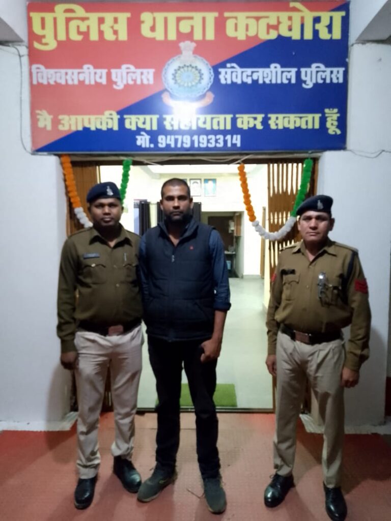 कटघोरा. कटघोरा थाने में प्रार्थी ने 08 दिसंबर को थाना उपस्थित आकर लिखित आवेदन पेश किया था कि मृत्युजय मिश्रा क्राइम ब्रांच पुलिस हू, कहकर धमकाने लगा और 1000 रूपये की मांग करने लगा मैं डर से 500 रूपये का नोट दिया तो 500 रूपये और मांगा तो मैं और नही है बोला तो बंद कर दूंगा कहकर कार्यवाही करने की धमकी देते हुए भय में डालकर जबरजस्ती दबाव बनाकर 500 रूपये ले लिया है कि आवेदन जांच पर आरोपी के विरूद्ध भयादोहन कर पैसा लेना पाये जाने से धारा सदर का अपराध कायम कर विवेचना में लिया गया। जिला पुलिस अधीक्षक कोरबा जितेन्द्र शुक्ला (भापुसे), के द्वारा अपराध निकाल के संबंध में दिशा निर्देश प्राप्त कर, अत्तिरिक्त पुलिस अधीक्षक अभिषेक वर्मा (रापुसे). अनुविभागीय अधिकारी कटघोरा पकज ठाकुर (रापुसे), के मार्गदर्शन में थाना प्रभारी निरीक्षक तेज कुमार यादव एवं सायबर सेल कोरबा प्रभारी सउनि अजय सोनवानी के नेतृत्व में कटघोरा थाना स्टाफ एवं सायबर सेल टीम के द्वारा आरोपी की पतासाजी कर आरोपी मृत्युंजय मिश्रा को पकड़ा गया। आरोपी के विरुद्ध पर्याप्त साक्ष्य सबूत पाए जाने पर आरोपी को विधिवत गिरफ्तार कर न्यायिक रिमांड पर भेजा गया है।