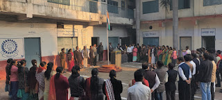 कोरबा….कमला नेहरू महाविद्यालय में 75वें गणतंत्र दिवस का उत्सव धूम धाम से मनाया गया। महाविद्यालय समिति के अध्यक्ष किशोर शर्मा ने राष्ट्रध्वज फहराया। इस अवसर पर उन्होंने कहा कि संविधान में निर्धारित नियम हमारे जीवन, देश व समाज की दशा-दिशा और राह निश्चित करते हैं। चाहे वह समाज के द्वारा बताए गए संविधान हों, कानून के द्वारा बताए गए संविधान हों या स्व परिमार्जित होकर निर्मित स्वयं के जीवन के लिए, स्वयं की कर्तव्य पारायणता के लिए परिमार्जित संविधान हों, उनका पालन सुनिश्चित कर अपने कर्तव्यों और दायित्वों का निर्वहन ही हमें एक जिम्मेदार व जागरुक नागरिक की पहचान देता है। बगैर संविधान के नियमों के जीवन और कार्यक्षेत्र ही नहीं, सबकुछ अस्तित्वहीन माना जाता है।विद्यार्थियों ने संगीत की मधुर धुन में सुमधुर प्रस्तुति से सभी को भाव विभोर कर दिया। समिति के वरिष्ठ सदस्यों ने भी आशीर्वचन प्रदान करते हुए छात्र-छात्राओं को संबोधित और प्रेरित किया। विद्यार्थियों और कनिष्ठ प्राध्यापकों ने वरिष्ठजनों को भारतीय संस्कृति और परंपरा का अनुसरण करते हुए चरण वंदन कर स्वतंत्रता दिवस की शुभकामनाएं दी। महाविद्यालय के प्राचार्य डॉ प्रशांत बोपापुरकर ने भी कार्यक्रम को संबोधित किया। इस दौरान प्रमुख रूप से समिति के वरिष्ठ सदस्य एवं पूर्व उपाध्यक्ष लोकेश्वर सिंह तोमर, समिति के सहसचिव उमेश लाम्बा, कॉलेज के सभी विभागप्रमुख, सहायक प्राध्यापक, कर्मचारीगण एवं छात्र छात्राएं उपस्थित रहे।