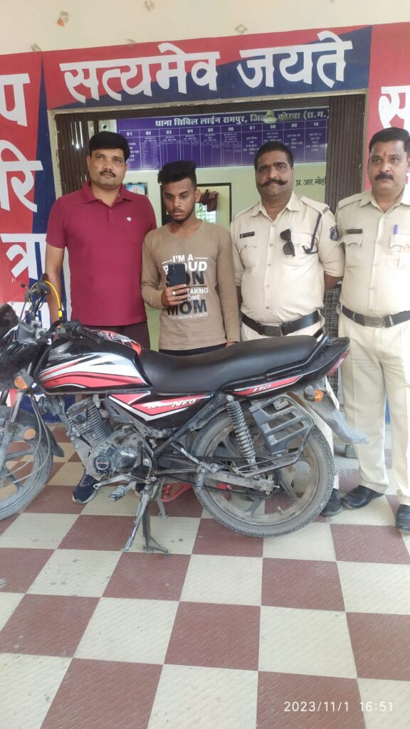 ▪️ आरोपी से मोटर सायकल, मोबाइल बरामद