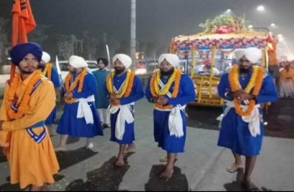 गुरुनानक जयंती पर सिख समाज ने पंच प्यारे की अगुवाई में निकाली गयी भव्य शोभायात्रा