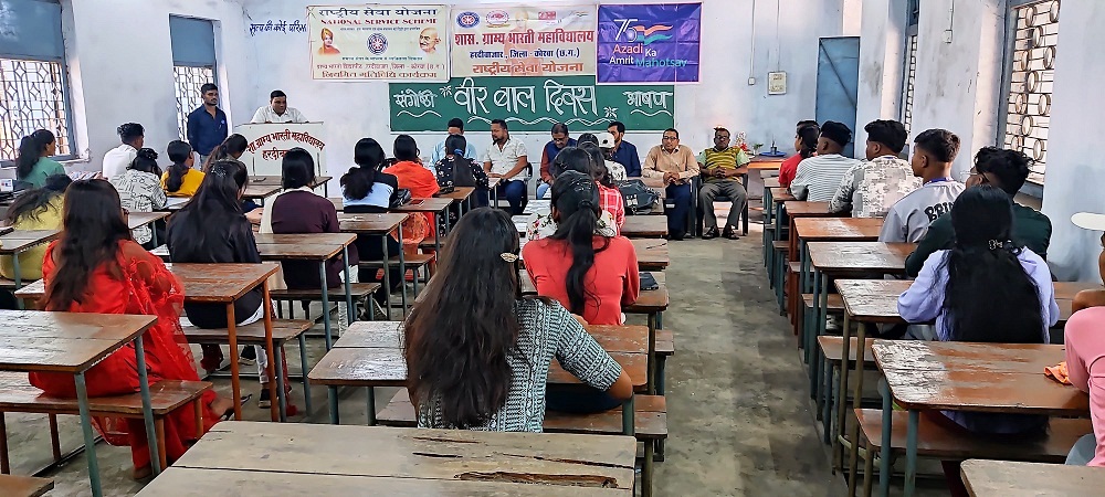 कोरबा । 9 जनवरी 2022 को दस सिख गुरुओं में से अंतिम गुरु गुरु गोबिंद सिंह के प्रकाश पर्व के दिन प्रधानमंत्री ने यह घोषणा की थी कि 26 दिसंबर को गुरु गोबिंद सिंह के पुत्रों- साहिबजादे बाबा जोरावर सिंह और बाबा फतेह सिंह की शहादत की स्मृति में उन्हें श्रद्धांजलि अर्पित करने के लिए वीर बाल दिवस मनाया जाएगा। उक्त घोषणा के अनुरूप छत्तीसगढ़ उच्च शिक्षा विभाग से प्राप्त निर्देशानुसार शासकीय ग्राम्य भारती महाविद्यालय हरदीबाजार की राष्ट्रीय सेवा योजना इकाई के तत्वावधान में महाविद्यालय परिसर में ब्योरेवार बौद्धिक संगोष्ठी का भव्य आयोजन किया गया तथा दो मिनट का मौन रखा गया।