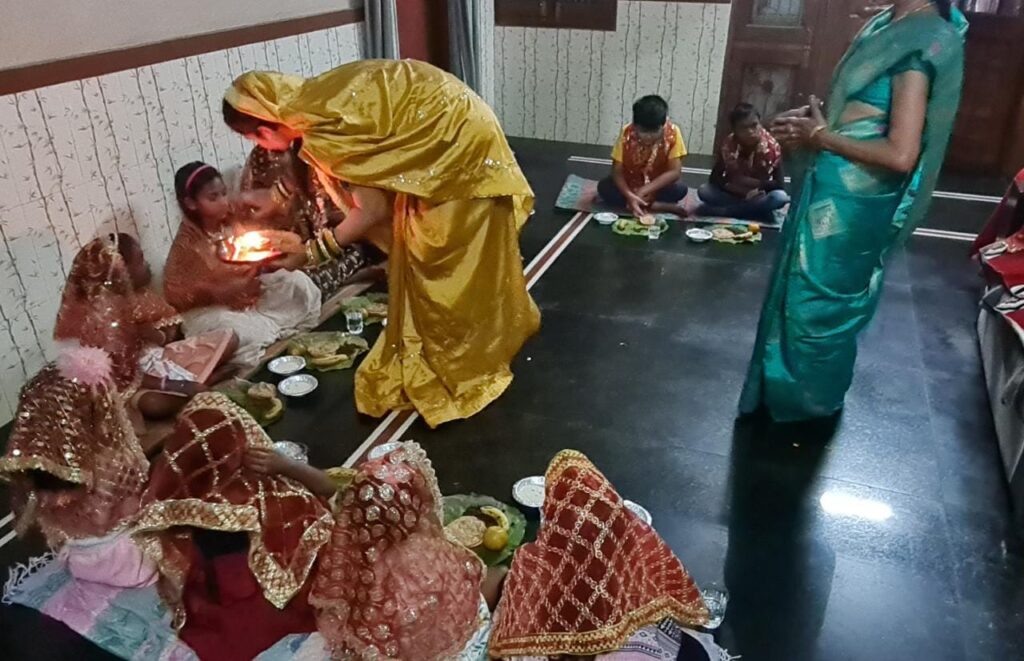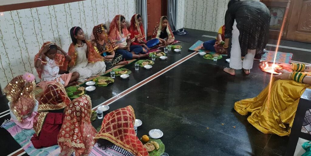 देवी स्वरूपा मां दुर्गा के नौ रूपों की पूजा के लिए व्रतधारियों ने बुधवार को कन्याओं का श्रृंगार कर उनकी पूजा कर उन्हें भोजन कराया। यह विधान गुरुवार को नवमी पर भी अधिकांश लोग करेंगे। हवन पूजन और माता की महाआरती के बाद शाम को मंदिरों में हवन अनुष्ठान शुरू हुआ। मां सर्वमंगला के दरबार में प्रज्ज्वलित हजारों की संख्या में मनोकामना ज्योत कलश को शांत किया गया। यहां ज्योति कलश के साथ जवारा कलश का विसर्जन मंदिर से लगे हसदेव नदी में गुरुवार को किया जाएगा। जवारा विसर्जन के दौरान भव्य शोभायात्रा निकाली जाएगी और गाजे- बाजे के साथ जवारा विसर्जन किया जाएगा