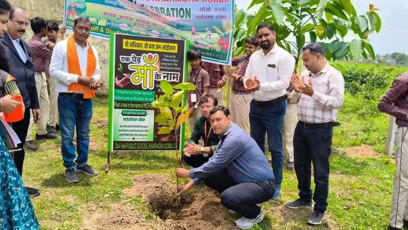 कोरबा,डीएवी मुख्यमंत्री पब्लिक स्कूल, खरमोरा, कोरबा में “एक पेड़ मां के नाम” अभियान के अंतर्गत हरित दिवस का आयोजन बड़े ही हर्षोल्लास और भव्यता के साथ किया गया। इस अवसर पर विद्यालय प्रांगण हरियाली और उत्साह से सराबोर हो गया। इस कार्यक्रम की अध्यक्षता विद्यालय के प्राचार्य श्री हेमंतो मुखर्जी ने की।मुख्य अतिथि के रूप में पधारे वार्ड क्रमांक 35, खरमोरा के पार्षद प्रताप सिंह कंवर, विशेष अतिथि के रूप में वरिष्ठ अधिवक्ता श्यामल मल्लिक (सत्र न्यायालय, कोरबा), दिनेश राज (प्रेस प्रतिनिधि, दैनिक भास्कर), नागेंद्र श्रीवास (क्राइम रिपोर्टर, हरिभूमि), बसंत कुमार
