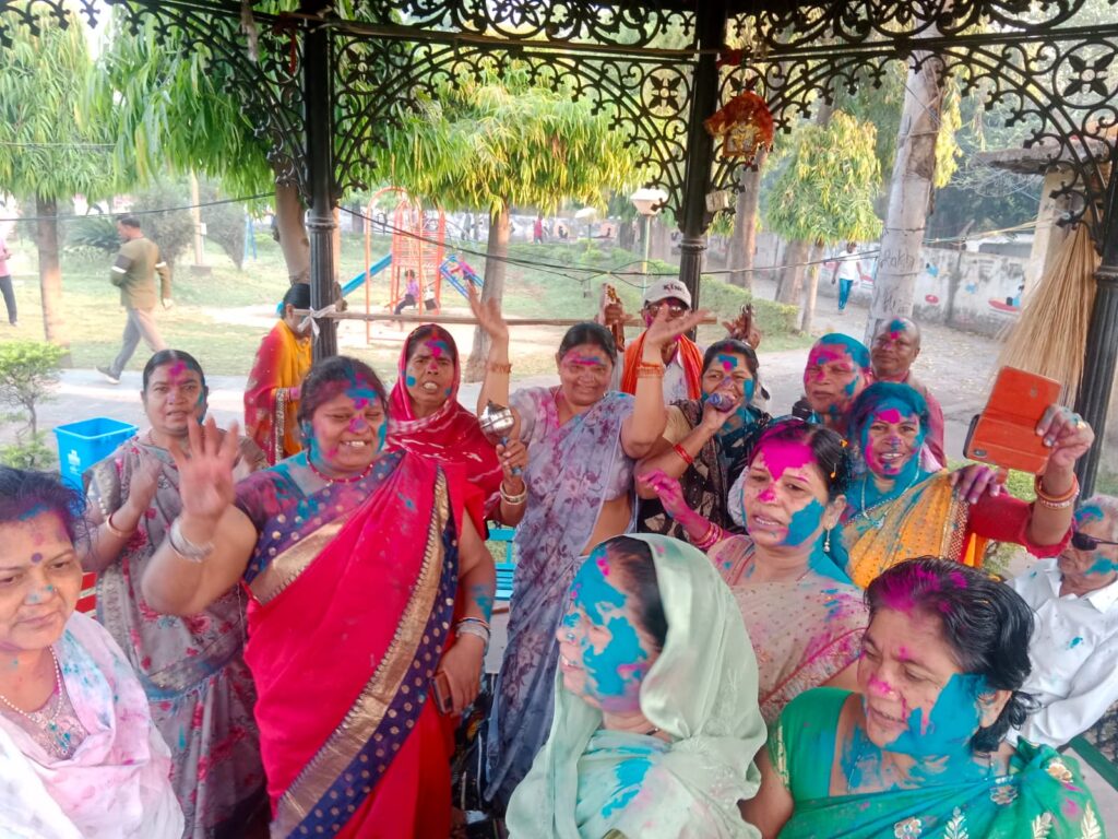कोरबा। पुष्पलता कीर्तन मंडली द्वारा निहारिका स्थित पुष्प लता उद्यान में 24 मार्च रविवार को सुबह 6:00 से 7:30 बजे तक फागोत्सव मनाया गया। कीर्तन मंडली की अध्यक्ष त्रिवेणी राजपूत ने बताया कि पिछले कई वर्षों से प्रतिदिन सुबह एक घंटा पुष्प लता कीर्तन मंडली द्वारा उद्यान में भजन कीर्तन का आयोजन किया जाता है। फागुन मास होने के कारण प्रतिदिन फागुन के गाने वह भजन कीर्तन किया जाता हैं। रविवार 24 मार्च की सुबह फाग गीत गाकर रंगों की होली खेली गई। मंडली द्वारा कीर्तन भी किया गया, साथ ही उद्यान में सुबह घूमने पहुंचे लोगों को भी गुलाल का टीका लगाकर एक दूसरे को होली की शुभकामनाएं दी गई। इस अवसर पर विद्यानंद राठौर, चक्रधर पटेल, जीवनलाल देवांगन, मंगत लाल श्रीवास, भागीरथी कश्यप, द्रौपदी, सरिता, सरोज, तारा, प्रमिला, हीरा शर्मा, कन्हैया, शिव कुमारी, हर कुंवर आदि उपस्थित रहे।
