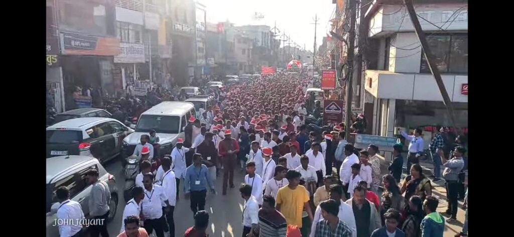 पूरे विश्व में 25 दिसंबर को प्रभु यीशु मसीह के जन्म पर क्रिसमस पर्व मनाया जाता है। जिसे मसीही बड़े ही उत्साह एवं धूमधाम के साथ मनाते हैं, रैली में भारी संख्या में मसीही विश्वासी उपस्थित रहे, प्रभु यीशु के आगमन का संदेश देने के लिए यह रैली निकाली गई। चर्च कैंपस में केक काटने के बाद दोपहर में रैली निकाली गई।