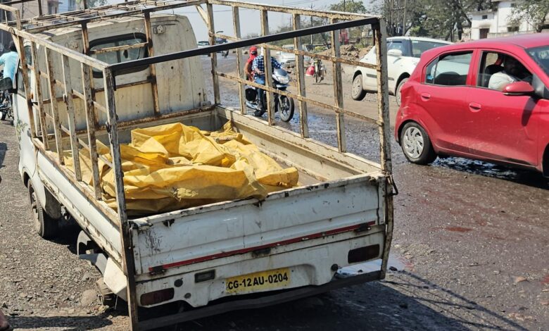 कोरबा-कुसमुण्डा। कुसमुण्डा मार्ग पर विकासनगर शिव मंदिर के पास कल 1 मार्च को दोपहर बीच सड़क एक मालवाहन ब्रेक डाउन हो गया। मालवाहन का पिछला बायां पहिया निकल जाने से गाड़ी बीच सड़क पर थम गई।