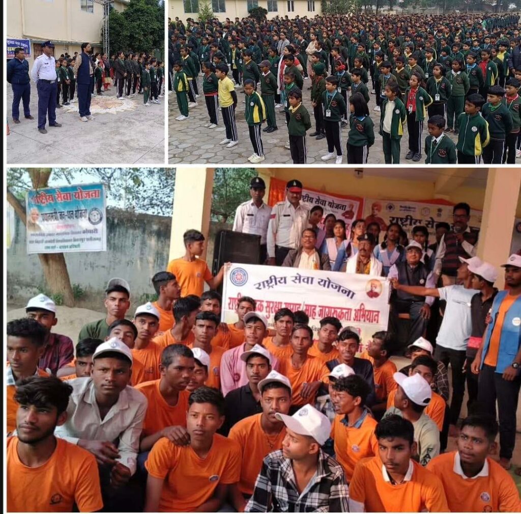 यातायात पुलिस और NSS के छात्र-छात्राओं के द्वारा शहर के विभिन्न चौक चौराहों पर ट्रैफिक पुलिस के साथ मिलकर यातायात नियमों का पालन करने के लिए राहगीरों को बताया गया