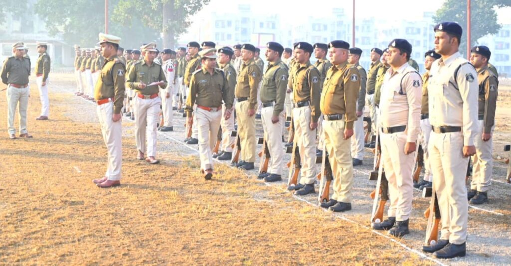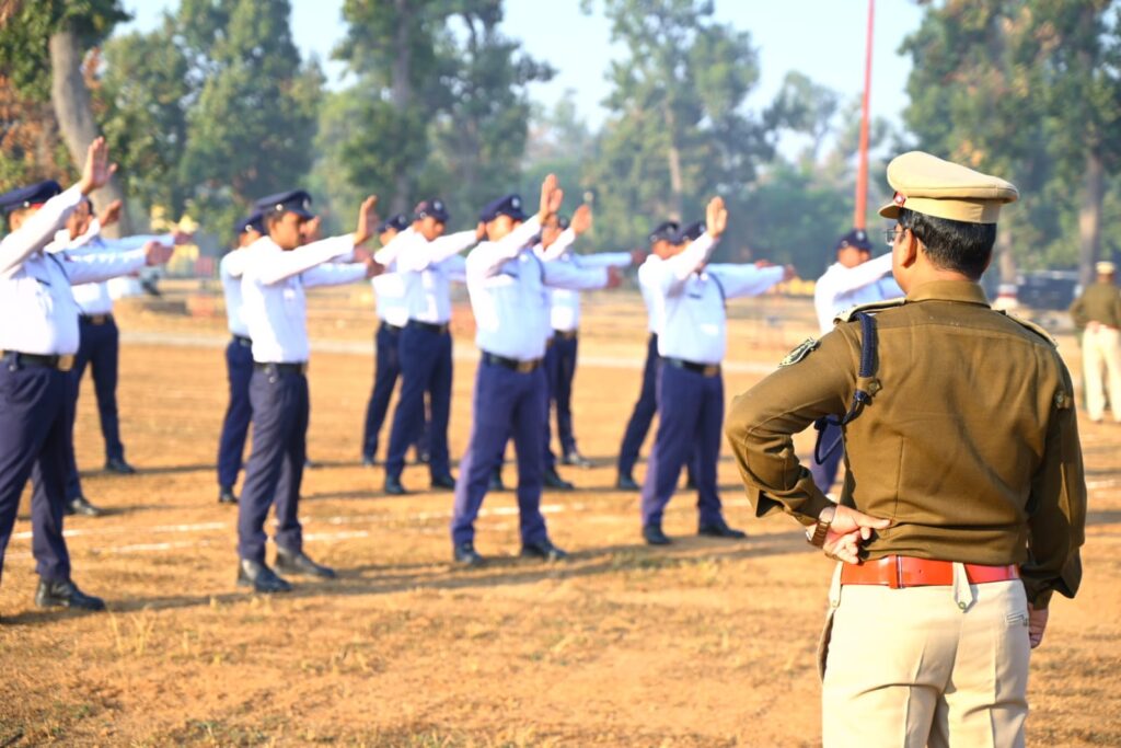 रक्षित केंद्र कोरबा में आयोजित जनरल परेड का पुलिस अधीक्षक ने किया निरीक्षण