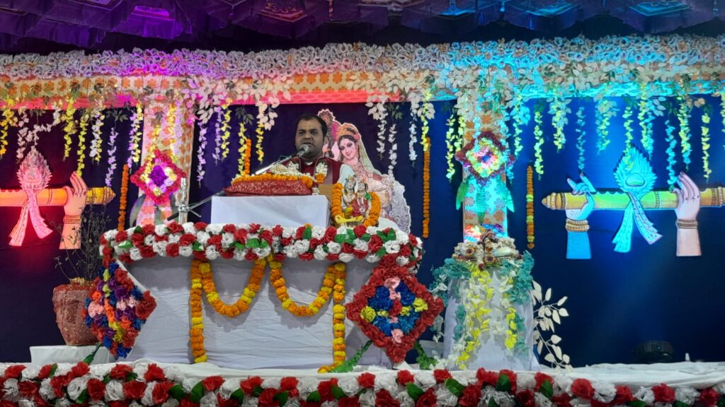 श्रीमद्भागवत महापुराण को वेदों का सार कहा गया है। उन्होंने श्रीमद्भागवत महापुराण का बखान करते हुए कहा कि सबसे पहले सुखदेव मुनि ने राजा परीक्षित को भागवत कथा सुनाई थी, उन्हें सात दिनों के अंदर तक्षक के दंश से मृत्यु का श्राप मिला था। कथा व्यास ने आगे बताया कि श्रीमद्भागवत कथा अमृत पान करने से संपूर्ण पापों का नाश होता है। श्रीमद् भागवत महापुराण वेदों का सार है, जब ज्ञान वैराग्य की मूर्छा दूर करने के लिए ऋषियों ने देवर्षि नारद से कहा किआप ज्ञान और वैराग्य को जगाने के लिए उन्हें श्रीमद् भागवत महापुराण सुनाओ। नारज जी ने कहा कि ऋषिवर मैंने उन्हें सारे वेद और उपनिषेद सुना दिए हैं। जब वेदों व उपनिषेदों से कोई फायदा नहीं हुआ तो भागवत पुराण से क्या फायदा होगा। ऋषियों ने कहा कि भागवत महापुराण सभी ग्रंथों का सार है, जो फायदा सार शिक्षा से होता है वह पूरी कहानी पढ़ने से नहीं होता है। य़ह ज्ञानियों का चिंतन, संतो का मनन, भक्तों का वंदन तथा भारत की धड़कन है। किसी का सौभाग्य जब शिखर पर होता है तब उसे श्रीमद् भागवत पढ़ने, कहने व सुनने को मिलती है। आचार्य श्री राहुल कृष्ण जी महाराज ने कहा कि भागवत अमृत की भांति है, इसके सुनने से मनुष्य भवसागर में तर जाता जाता है। इसके सुनने से मनुष्य भवसागर से तर जाता है। परमात्मा का नाम नहीं ले तो वह जीवन में पशु के समान है।उन्होंने कहा कि कण-कण में भगवान हैं। आप जिस रूप में भगवान को याद करें वही रूप भगवान का है। जरूरी नहीं है कि आप का स्मरण करने के लिए मंदिर जाएं। जरूरी है कि भगवान का स्मण करने के लिए मन मंदिर को सजाएं और उनकी भक्ति करें। इससे जीवन के सारे दुख और संकट को सहने की शक्ति आपको मिले,लक्ष्मी निवास में प.रविशंकर नगर सैट पैलाटी स्कुल के समाने यह कथा प्रतिदिन दोपहर 3:00 से देर शाम तक चलते रहेगी है .इसका समापन 31दिसंबर को सहस्त्र धारा, हवन पूर्णाहुति के साथ होगा. वही आयोजन पत्रकार कृष्ण कुमार राठौर एवं उनकी धर्मपत्नि श्रीमति रमा राठौर व्दारा किया जा रहा है
