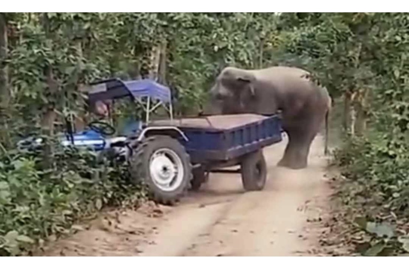 कोरबाl कोरबा के कटघोरा वन मंडल का कोरबी सर्कल भी जिले के अन्य स्थानों की तरह ही रेत चोरों का स्वर्ग बना हुआ है। घने जंगल से चोर ट्रैक्टर में रेत भरकर उसको जहां-तहां खपाते हैं। लगता है चोरों की यह हरकत जंगली हाथियों को भी नागवार गुजर रही है। तभी तो रेत भरे ट्रैक्टर के पीछे जैसे ही एक हाथी पड़ा, चालक ट्रैक्टर छोड़कर भाग निकला। हाथी ने गुस्से में आकर ट्रैक्टर को पलटने का प्रयास किया। ट्रैक्टर पलटा तो नहीं लेकिन सड़क के किनारे लुढ़क गया।