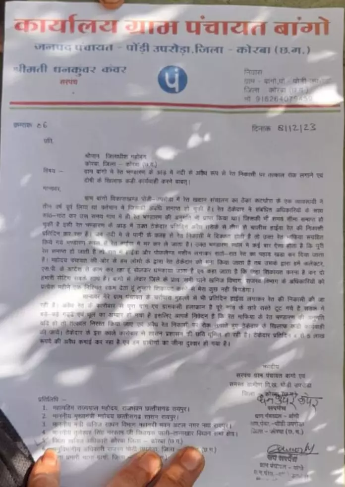 रेत भंडारण की आड़ में ठेकेदार करा रहा नदी से अवैध खनन, सरपंच, सचिव ने कलेक्टर से की रेत निकासी पर रोक लगाने की मांग