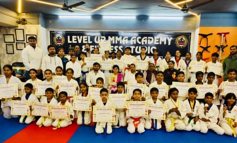 कोरबा…..राज्य स्तरीय कराते एवं ताईक्वांडो प्रतियोगिता में मेडलिस्ट खिलाड़ियो को मनोबल एवं प्रोत्साहन देने लेवल अप मिक्स्ड मार्शल आर्ट्स अकादमी द्वारा सम्मान समारोह आयोजित किया गया था लेवल अप एमएमए अकादमी संचालक प्रेमराज बंजारे ने बताया कि कार्यक्रम में राज्य कराते प्रतियोगिता के 51 खिलाड़ियो ने उत्कृष्ट प्रदर्शन कर मेडल्स प्राप्त किया था।