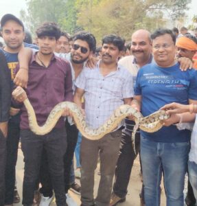 पेड़ पर लिपटे अजगर की जानकारी स्थानीय व्यापारी मुकेश गोयल द्वारा सर्पमित्र केशव जायसवाल को दी। केशव को सूचना मिलते ही वन विभाग की टीम के साथ वो मौके पर पहुंचे और पेड़ पर लिपटे अजगर को घंटो रेस्क्यू के बाद भी अजगर पेड़ की टहनी को नही छोड़ रहा था। उसी बीच वहां पर पहुंचे भाजपा नेता मनोज नायडू ने भी सर्पमित्र केशव को सहयोग करते हुए बड़ी मशक्कत के बाद 5 फिट अजगर को सुरक्षित रेस्क्यू के बाद बाहर उतारा। और वन विभाग की टीम के साथ अजगर को सुरक्षित जंगल की ओर छोड़ दिया गया। इस दौरान सड़क मार्ग लोगों की भीड़ से घंटो बाधित रहा।