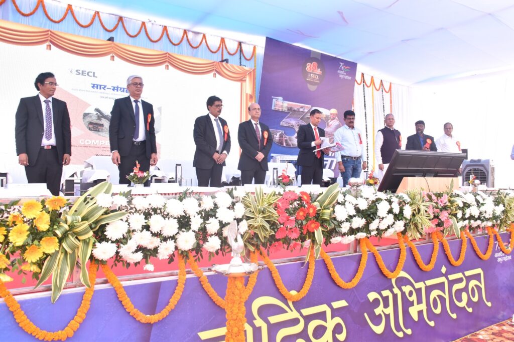 कोरबा…..एसईसीएल मुख्यालय प्रशासनिक भवन प्रांगण में दिनांक 25.11.2023 को एसईसीएल स्थापना दिवस के अवसर पर मुख्य अतिथि डॉ. प्रेम सागर मिश्रा के मुख्य आतिथ्य, निदेशक (वित्त) श्री जी. श्रीनिवासन, निदेशक तकनीकी संचालन सह योजना-परियोजना श्री एस.एन. कापरी, निदेशक (कार्मिक) श्री देबाशीष आचार्या, मुख्य सतर्कता अधिकारी श्री जयंत कुमार खमारी के विशिष्ट आतिथ्य, पूर्व अध्यक्ष सह प्रबंध निदेशक श्री आर.बी. माथुर, श्री व्ही.के. सहगल, श्री एम.पी. दीक्षित, पूर्व निदेशक तकनीकी संचालन श्री एन.के. सिंह, श्री सीएल श्रीवास्तव, पूर्व निदेशक (कार्मिक) श्री के.के. श्रीवास्तव, एसईसीएल संचालन समिति के श्री नाथूलाल पाण्डे (एचएमएस), श्री हरिद्वार सिंह (एटक), श्री मजरूल हक अंसारी (बीएमएस), श्री गोपाल नारायण सिंह (एसईकेएमएसी), श्री वी.एम. मनोहर (सीटू), श्री ए. के. पाण्डेय (सीएमओएआई) के करकमलों से निम्न श्रमवीरों को पुरस्कृत किया गया।