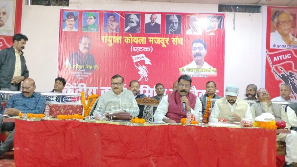 कोरबा …. श्रमिक संगठनों और किसान संगठनों के एक संयुक्त मंच ने केंद्र सरकार की ‘मजदूर, किसान एवं देश-विरोधी नीतियों के खिलाफ’ 16 फरवरी को देशव्यापी आम हड़ताल और ‘ग्रामीण बंद’ का आह्वान किया है। संयुक्त ट्रेड यूनियनों ने 16 फरवरी, 2024 की औद्योगिक एवं सेक्टोरल हड़ताल की घोषणा की है। इसकी तैयारी को लेकर संयुक्त ट्रेड यूनियन मंच, कोरबा के संगठनों की बैठक आज ढेलवाडीह के जागृति क्लब में आयोजित की गई। इसमें AITUC, HMS, CITU, ICTU के नेताओं ने भाग लिया। बैठक में हड़ताल के प्रचार को बेहतर तरीके से मजदूरों के बीच ले जाने के लिए अपने-अपने संगठन और यूनियन की बैठक 26 जनवरी, 2024 तक करनी है। SECL के राष्ट्रीय उपाध्यक्ष हरिद्वार सिंह ने कहा कि संयुक्त मंच फसलों के उच्च न्यूनतम समर्थन मूल्य एमएसपी लागू करने व श्रमिकों को 26,000 रुपये की न्यूनतम मासिक मजदूरी, चार श्रम संहिताओं को निरस्त करने, आईपीसी एवं सीआरपीसी में किए गए संशोधनों को निरस्त करने और रोजगार गारंटी को मौलिक अधिकार बनाने की मांग कर रहा है।SECL के राष्ट्रीय उपाध्यक्ष हरिद्वार सिंह ने कहा कि संयुक्त किसान मोर्चा (एसकेएम) और केंद्रीय श्रम संगठनों (सीटीयू) एवं महासंघों के मंच ने एक संयुक्त बयान में इन मांगों को लेकर 16 फरवरी को देशव्यापी हड़ताल और ग्रामीण बंद बुलाने का आह्वान किया है। उन्होंने छात्रों, युवाओं, शिक्षकों, महिलाओं, सामाजिक आंदोलनों और कला, रिक्शा चालक, संस्कृति, साहित्य के क्षेत्र के सभी समान विचारधारा वाले आंदोलनों से समर्थन की अपील की है। बयान के मुताबिक, ‘एसकेएम और सीटीयू/महासंघ/एसोसिएशन 16 फरवरी, 2024 को केंद्र सरकार की श्रमिक-विरोधी, किसान-विरोधी और राष्ट्र-विरोधी नीतियों के खिलाफ औद्योगिक/क्षेत्रीय हड़ताल और ग्रामीण बंद के साथ-साथ विभिन्न स्तरों पर देशव्यापी व्यापक लामबंदी का आह्वान करते हैं।’