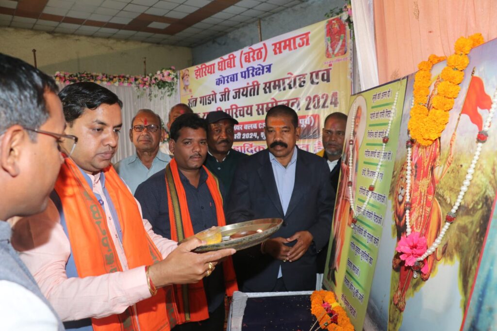 कोरबा। युवा मोर्चा के जिला महामंत्री और वॉर्ड क्रमांक 16 के पार्षद नरेंद्र देवांगन जुनियर क्लब में झेरिया धोबी समाज द्वारा आयोजित संत गाडगे जी की जयंती और युवक युवती परिचय सम्मेलन में शामिल हुए।