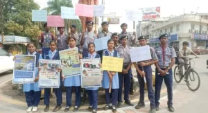 सड़क सुरक्षा माह के समापन अवसर पर रोवर्स, रेंजर्स ने निकाली जागरूकता रैली