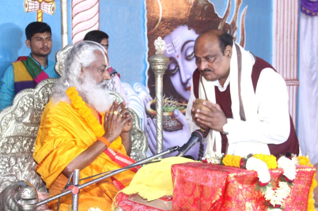 साड़ा कॉलोनी जमनीपाली के सप्तदेव शिवमंदिर प्रांगण में आयोजित शिव महापुराण कथा के छठवें दिवस पूर्व केबिनेट मंत्री जयसिंह अग्रवाल कथा स्थल पहुंचकर कथा श्रवण कर पुण्य लाभ लिया। इस अवसर पर उन्होंने कथावाचक स्वामी घनश्यामाचार्य महाराज से मिलकर आशीर्वाद लिया और क्षेत्रवासियों के लिए सुख शांति व समृद्धि की कामना की। श्री अग्रवाल ने आयोजन समिति के सदस्यों के प्रति आभार व्यक्त करते हुए कहा कि कोई भी धार्मिक आयोजनों से जहाँ मातृत्व भाव की भावना जागृत होती है वही क्षेत्र में सकारात्मक ऊर्जा का संचार होता है और कथाओं में अनेकों अवतारों का वर्णन सुनने समझने को मिलता है। इस मौके पर उनके साथ महापौर राजकिशोर प्रसाद, बी एन सिंह, मुकेश राठौर, जे पी अग्रवाल, प्रेम अग्रवाल, विनोद अग्रवाल, अवधेश सिंह, बैजनाथ अग्रवाल, राजेन्द्र तिवारी सहित अन्य श्रद्धालुओं ने भी आचार्य श्री से आशीर्वाद प्राप्त किया और कथा श्रवण किया।