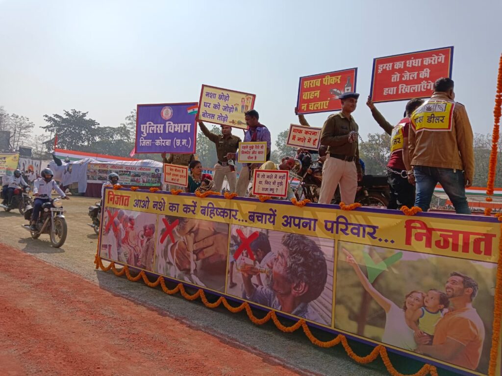 झांकी में वन विभाग रहा प्रथम – गणतंत्र दिवस के मुख्य समारोह में आज 15 शासकीय विभागों और पुलिस विभाग द्वारा आकर्षक झांकियों का प्रदर्शन किया गया। जिला पंचायत कोरबा द्वारा हमर गौठान सुघ्घर गौठान की थीम पर आधारित झांकी प्रस्तुत की गई। वन विभाग द्वारा जैव विविधता, लोक स्वास्थ्य यांत्रिकी विभाग द्वारा जल जीवन मिशन, जिला उद्योग एवं व्यापार केंद्र विभाग द्वारा विभिन्न स्वरोजगार योजनाओं पर आधारित झांकी, रेशम विभाग द्वारा तसर धागाकरण योजना, उद्यान विभाग द्वारा संरक्षित खेती, पशुधन विभाग द्वारा गौठानों में कुक्कुट पालन, मछली पालन विभाग द्वारा मछली पालन आय का साधन थीम पर आधारित झांकी प्रस्तुत की गई। इसी प्रकार आदिवासी विकास विभाग द्वारा आदिवासी बालक छात्रावास अजगरबहार का माॅडल प्रस्तुत किया गया। राजीव गांधी शिक्षा मिशन द्वारा स्वामी आत्मानंद उत्कृष्ट विद्यालय के माॅडल, क्रेडा द्वारा सौर सुजला योजना से किसानों को कराये जा रहे सिंचाई सुविधा का माॅडल, स्वास्थ्य विभाग द्वारा हमर अस्पताल तथा हेल्थ एण्ड वेलनेस सेंटर, महिला एवं बाल विकास विभाग द्वारा सुपोषण अस्त्र करेंगे कुपोषण ध्वस्त की थीम पर और कृषि विभाग द्वारा गौठान की थीम पर झांकी प्रस्तुत की गई। पुलिस विभाग द्वारा नशा मुक्ति के लिए चलाए जा रहे निजात अभियान का जीवंत प्रदर्शन किया गया। झांकी में प्रथम पुरस्कार वन विभाग कोरबा, द्वितीय पुरस्कार स्वास्थ्य विभाग और तृतीय पुरस्कार पुलिस विभाग को मिला।