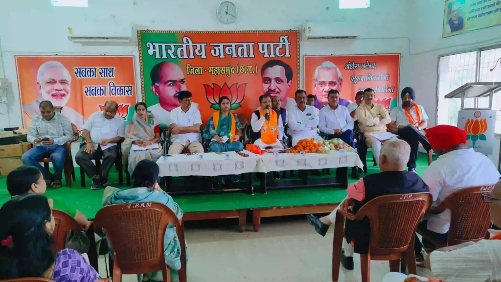 महासमुन्द। छतीसगढ़ प्रदेश में आगामी समय मे होने वाले चुनावों के लिए भाजपा संगठन से नवनियुक्त संभाग प्रभारी, बिहार के विधायक दिलीप जायसवाल जी की उपस्थिति में भाजपा जिला कार्यसमिति की आवश्यक परिचयात्मक बैठक जिला भाजपा कार्यालय में 6 सितंबर को सम्पन्न हुई। इस बैठक के पूर्व, दिलीप जायसवाल जी ,सांसद चुंन्नीलाल साहू,भाजपा जिलाध्यक्ष श्रीमती रूपकुंमारी चौधरी,विधानसभा प्रभारी प्रफुल्ल विश्वकर्मा,पूर्व विधायक डॉ विमल चोपड़ा,पूर्व क्रेडाध्यक्ष पुरंदर मिश्र,वरिष्ठ भाजपा नेता शंकर अग्रवाल,जिला सह प्रभारी संध्या परगनिहा ,विधानसभा संयोजक चन्द्रहास चन्द्राकर, प्रदेश सदस्य इंद्रजीत सिह गोल्डी,जिला महामंत्री प्रदीप चन्द्राकर ,संजय शर्मा,भाजपा नेता मोती साहू,प्रकाश चन्द्राकर आदि ने भारतमाता,पण्डित दीनदयाल उपाध्याय,डॉ श्यामा प्रसाद मुखर्जी जी के छायाचित्र पर माल्यार्पण एवम पूजा अर्चना कर बैठक का शुभारंभ किया गया।