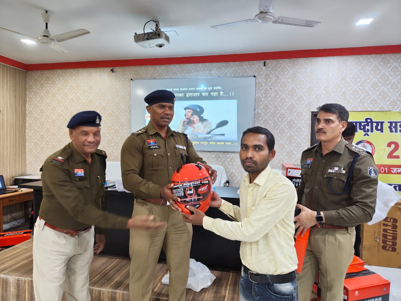 Cg Road Safety Month: रायपुर, सडक़ सुरक्षा माह के अंतर्गत रायपुर यातायात पुलिस द्वारा दोपहिया वाहन चालकों की सुरक्षा को लेकर जागरूकता अभियान चलाया गया। इस अभियान के तहत खाद्य सामग्री की डिलीवरी करने वाले डिलीवरी बॉय को यातायात नियमों की जानकारी दी गई और उन्हें नि:शुल्क हेलमेट वितरित किए गए। साथ ही शहर में हेलमेट रैली निकालकर आम लोगों को भी सुरक्षित वाहन चलाने का संदेश दिया गया।