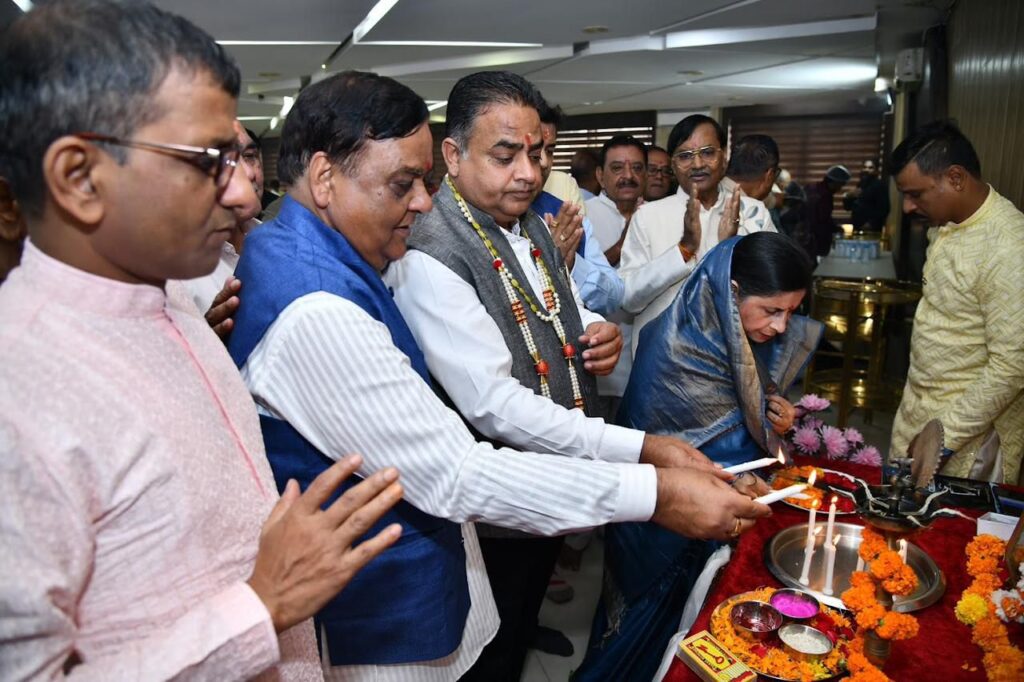 रायपुर: Raipur Chamber News छत्तीसगढ़ चेम्बर ऑफ़ कामर्स एंड इंडस्ट्रीज द्वारा प्रतिवर्षानुसार 21 अक्टूबर सुबह 11 से दोपहर 1 बजे तक दीपावली मिलन समारोह का आयोजन चौधरी देवीलाल व्यापार उद्योग भवन, बाम्बे, रायपुर में संपन्न हुआ, जिसमे चेंबर संरक्षक श्रीचंद सुंदरानी से लेकर सलाहकार, चेयर मेन, वाईस चेयरमेन, प्रदेश प्रभारी आईटी, प्रदेश कार्यालय प्रभारी, प्रदेश सांस्कृतिक प्रभारी, प्रदेश उपाध्यक्ष, प्रदेश मंत्री, संविधान संशोधन समिति सदस्य, अनुशासन समिति सदस्य, कार्यकारी सदस्य, ट्रांसपोर्ट चेंबर, महिला चेंबर एवं विभिन्न व्यापारी एसोसिएशन के पदाधिकारी सहित पुरे प्रदेश के चेंबर पदाधिकारी एवं सदस्यगण बड़ी संख्या में सम्मिलित हुए साथ ही रायपुर ग्रामीण विधानसभा क्षेत्र के विधायक मोतीलाल साहू, विधायक रायपुर उत्तर विधानसभा पुरंदर मिश्रा, सीएसआईडीसी अध्यक्ष राजीव अग्रवाल, छत्तीसगढ़ राज्य सहकारी बैंक अध्यक्ष केदार नाथ गुप्ता, छत्तीसगढ़ राज्य अल्पसंख्यक आयोग अध्यक्ष अमरजीत सिंह छाबड़ा, पूर्व विधायक कुलदीप जुनेजा पूर्व महापौर प्रमोद दुबे, बीजेपी प्रवक्ता अमित चिमनानी, बीजेपी प्रदेश उपाध्यक्ष ललित जैसिंघ, एम आई सी सदस्य महेंद्र खोड़िया, नन्द किशोर साहू, अमर गिदवानी, ने अपनी गरिमामयी उपस्थिति दर्ज कराई, जहां चेंबर अध्यक्ष  सतीश थौरानी, महामंत्री अजय भसीन, कोषाध्यक्ष निकेश बरडिया एवं चेयरमेन गोपाल कृष्ण अग्रवाल व वाईस चेयरमैन चेतन तारवानी सहित पदाधिकारी एवं अन्य सदस्यों ने स्वागत किया।