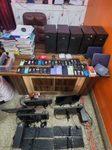 – आरोपियों से 50 मोबाइल, 10 डेस्कटॉप कंप्यूटर, सिम कार्ड, 60 बैंक अकाउंट कीट बरामद
